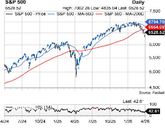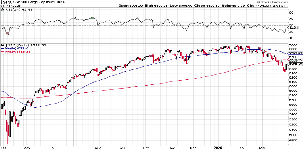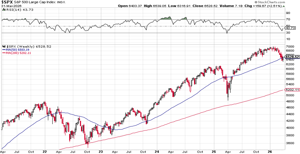 Bounce from oversold? Stocks are now quite oversold, and ever “oversolder” than a week ago – despite the rally on news that President Trump may end the war even though the Strait of Hormuz isn’t fully back in business. A weekly oversold condition (bottom chart) is more significant given its 70-trading-day equivalent.