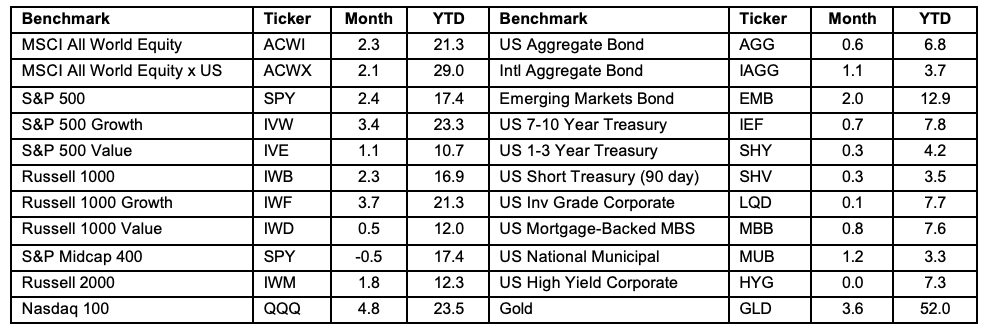 The US Aggregate Bond index is up 6.8% YTD (60/40 is up 13.2%). The 10-year T-Note yield is at 4.09%.